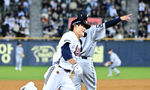 [OSEN=지형준 기자] 8일 오후 서울 잠실야구장에서 2025 신한 SOL Bank KBO리그 두산 베어스와 한화 이글스의 경기가 열렸다.이날 두산은 최승용, 한화는 문동주를 선발로 내세웠다.4회말 2사 2루에서 두산 박계범이 1타점 중전 적시타