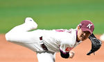 [OSEN=지형준 기자] 8일 오후 서울 잠실야구장에서 2025 신한 SOL Bank KBO리그 두산 베어스와 한화 이글스의 경기가 열렸다.이날 두산은 최승용, 한화는 문동주를 선발로 내세웠다.4회말 무사에서 한화 문동주가 두산 양의지에 좌월