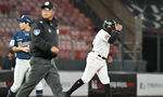 [OSEN=고척, 이대선 기자] 8일 오후 서울 고척스카이돔에서 2025 신한 SOL Bank KBO리그 키움 히어로즈와 LG 트윈스의 경기가 열렸다.키움은 윤현, LG는 손주영을 선발 투수로 내세웠다.마운드를 내려온 키움 윤현이 더그아웃에서 아쉬