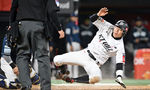 [OSEN=부산, 이석우 기자] 8일 부산 사직야구장에서 2025 신한 SOL 뱅크 KBO 리그 롯데 자이언츠와 KIA 타이거즈의 경기가 열렸다. 홈팀 롯데는 김진욱이, 방문팀 KIA는 김도현이 선발로 출전했다.롯데 자이언츠 박승욱이 4회말 힘찬 타
