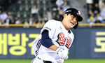 [OSEN=지형준 기자] 8일 오후 서울 잠실야구장에서 2025 신한 SOL Bank KBO리그 두산 베어스와 한화 이글스의 경기가 열렸다.이날 두산은 최승용, 한화는 문동주를 선발로 내세웠다.4회말 2사 2루에서 두산 박계범이 1타점 중전 적시타