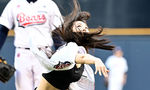 [OSEN=지형준 기자] 8일 오후 서울 잠실야구장에서 2025 신한 SOL Bank KBO리그 두산 베어스와 한화 이글스의 경기가 열렸다.이날 두산은 최승용, 한화는 문동주를 선발로 내세웠다.경기에 앞서 배우 송지우가 시구를 하고 있다. 2025.04