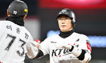 [OSEN=수원, 조은정 기자]8일 오후 경기도 수원 KT위즈파크에서 ‘2025 신한 SOL Bank KBO리그’ KT 위즈와 NC 다이노스의 경기가 열렸다.홈팀 KT는 고영표, 방문팀 NC는 목지훈을 선발로 내세웠다.3회말 1사 1루 KT 허경민이 중전 안타를 날