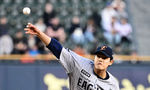 [OSEN=지형준 기자] 8일 오후 서울 잠실야구장에서 2025 신한 SOL Bank KBO리그 두산 베어스와 한화 이글스의 경기가 열렸다.이날 두산은 최승용, 한화는 문동주를 선발로 내세웠다.1회말 한화 문동주가 역투하고 있다. 2025.04.08 / jpnews@
