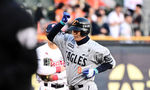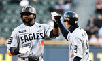 [OSEN=지형준 기자] 8일 오후 서울 잠실야구장에서 2025 신한 SOL Bank KBO리그 두산 베어스와 한화 이글스의 경기가 열렸다.이날 두산은 최승용, 한화는 문동주를 선발로 내세웠다.1회초 무사 1루에서 한화 플로리얼이 우전 안타를 날