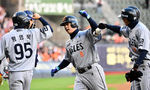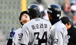 [OSEN=지형준 기자] 8일 오후 서울 잠실야구장에서 2025 신한 SOL Bank KBO리그 두산 베어스와 한화 이글스의 경기가 열렸다.이날 두산은 최승용, 한화는 문동주를 선발로 내세웠다.1회초 무사 1,2루에서 한화 노시환이 선제 좌월 스리