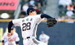 [OSEN=지형준 기자] 8일 오후 서울 잠실야구장에서 2025 신한 SOL Bank KBO리그 두산 베어스와 한화 이글스의 경기가 열렸다.이날 두산은 최승용, 한화는 문동주를 선발로 내세웠다.1회초 두산 최승용이 역투하고 있다. 2025.04.08 / jpnews@