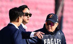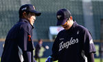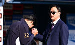 [OSEN=지형준 기자] 8일 오후 서울 잠실야구장에서 2025 신한 SOL Bank KBO리그 두산 베어스와 한화 이글스의 경기가 열렸다.이날 두산은 최승용, 한화는 문동주를 선발로 내세웠다.한화 김경문 감독이 최원호 해설위원과 인사를 나누