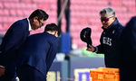 [OSEN=지형준 기자] 8일 오후 서울 잠실야구장에서 2025 신한 SOL Bank KBO리그 두산 베어스와 한화 이글스의 경기가 열렸다.이날 두산은 최승용, 한화는 문동주를 선발로 내세웠다.한화 김경문 감독이 훈련을 지켜보고 있다. 이날 하