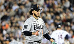 [OSEN=지형준 기자] 9일 오후 서울 잠실야구장에서 2025 신한 SOL Bank KBO리그 두산 베어스와 한화 이글스의 경기가 열렸다.이날 두산은 콜 어빈, 한화는 폰세를 선발로 내세웠다.8회초 1사 1루에서 한화 최재훈이 심우준의 우전 안타