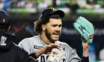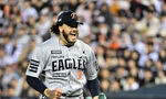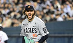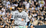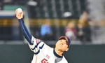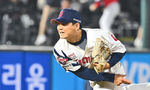 [OSEN=지형준 기자] 9일 오후 서울 잠실야구장에서 2025 신한 SOL Bank KBO리그 두산 베어스와 한화 이글스의 경기가 열렸다.이날 두산은 콜 어빈, 한화는 폰세를 선발로 내세웠다.6회말 2사에서 한화 폰세가 두산 오명진을 2루 땅볼로