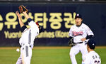 [OSEN=수원, 박준형 기자] 9일 수원KT위즈파크에서 ‘2025 신한 SOL BANK KBO리그’ KT 위즈와 NC 다이노스의 경기가 진행됐다.이날 경기에서 KT는 헤이수스를, NC는 로건을 선발투수로 내세웠다.5회말 1사 1루 KT 김민혁의 내야땅볼때 병