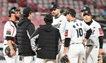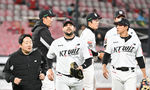 [OSEN=수원, 박준형 기자] 9일 수원KT위즈파크에서 ‘2025 신한 SOL BANK KBO리그’ KT 위즈와 NC 다이노스의 경기가 진행됐다.이날 경기에서 KT는 헤이수스를, NC는 로건을 선발투수로 내세웠다.4회초 하체 통증을 느낀 KT 선발투수 헤이