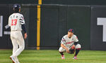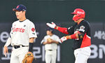 [OSEN=지형준 기자] 9일 오후 서울 잠실야구장에서 2025 신한 SOL Bank KBO리그 두산 베어스와 한화 이글스의 경기가 열렸다.이날 두산은 콜 어빈, 한화는 폰세를 선발로 내세웠다.1회초 1사 1루에서 한화 플로리얼이 문현빈의 3루수 파