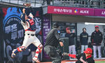 [OSEN=지형준 기자] 9일 오후 서울 잠실야구장에서 2025 신한 SOL Bank KBO리그 두산 베어스와 한화 이글스의 경기가 열렸다.이날 두산은 콜 어빈, 한화는 폰세를 선발로 내세웠다.1회말 무사에서 한화 폰세가 두산 정수빈 타석에 발을