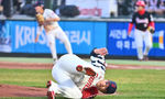 [OSEN=지형준 기자] 9일 오후 서울 잠실야구장에서 2025 신한 SOL Bank KBO리그 두산 베어스와 한화 이글스의 경기가 열렸다.이날 두산은 콜 어빈, 한화는 폰세를 선발로 내세웠다.1회초 1사 1루에서 한화 플로리얼이 문현빈의 3루수 파
