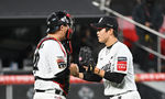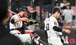 [OSEN=수원, 박준형 기자] KT가 투타 조화를 앞세워 연승을 달렸다.KT는 9일 수원KT위즈파크에서 열린 ‘2025 신한 SOL BANK KBO리그’ NC와의 대결에서 4-1로 승리했다.경기종료 후 KT 장성우가 박영현의 엉덩이를 발로 차고 있다 2025.04.0