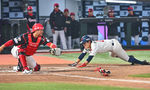 [OSEN=잠실, 지형준 기자] 10일 오후 서울 잠실야구장에서 2025 신한 SOL Bank KBO리그 두산 베어스와 한화 이글스의 경기가 열렸다.이날 두산은 잭로그, 한화는 와이스를 선발로 내세웠다.4회말을 마치고 두산 케이브가 한화 와이스를