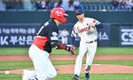 [OSEN=수원, 조은정 기자]10일 오후 경기도 수원 KT위즈파크에서 ‘2025 신한 SOL Bank KBO리그’ KT 위즈와 NC 다이노스의 경기가 열렸다.홈팀 KT는 오원석, 방문팀 NC는 라일리를 선발로 내세웠다.2회말 KT 선두타자 김민혁 땅볼에 NC 3루