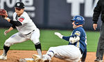 [OSEN=수원, 조은정 기자]10일 오후 경기도 수원 KT위즈파크에서 ‘2025 신한 SOL Bank KBO리그’ KT 위즈와 NC 다이노스의 경기가 열렸다.홈팀 KT는 오원석, 방문팀 NC는 라일리를 선발로 내세웠다.2회초 1사 3루 NC 데이비슨이 김휘집 땅볼