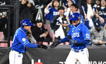 [OSEN=수원, 이대선 기자] 11일 오후 수원 KT위즈파크에서 2025 신한 SOL Bank KBO리그 KT 위즈와 삼성 라이온즈의 경기가 열렸다.6회초 1사에서 삼성 구자욱이 중월 솔로 홈런을 치고 더그아웃에서 동료들과 환호하고 있다. 2025.04.11 /sunda