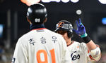 [OSEN=수원, 이대선 기자] 11일 오후 수원 KT위즈파크에서 2025 신한 SOL Bank KBO리그 KT 위즈와 삼성 라이온즈의 경기가 열렸다.6회초 1사에서 삼성 구자욱이 중월 솔로 홈런을 치고 더그아웃에서 박진만 감독과 환호하고 있다. 2025.04.11