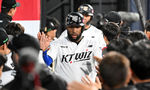 [OSEN=수원, 이대선 기자] 11일 오후 수원 KT위즈파크에서 2025 신한 SOL Bank KBO리그 KT 위즈와 삼성 라이온즈의 경기가 열렸다.3회초 1사 1,3루에서 KT 장성우의 희생플라이 때 홈을 밟은 3루주자 로하스가 더그아웃에서 동료들과 환호