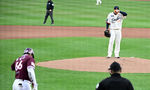 [OSEN=대전, 지형준 기자] 11일 오후 대전 한화생명볼파크에서 2025 신한 SOL Bank KBO리그 한화 이글스와 키움 히어로즈의 경기가 열렸다.이날 한화는 류현진, 키움은 김윤하를 선발로 내세웠다.1회초 1사에서 한화 류현진과 키움 푸