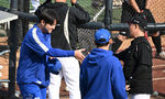 [OSEN=수원, 이대선 기자] 11일 오후 수원 KT위즈파크에서 2025 신한 SOL Bank KBO리그 KT 위즈와 삼성 라이온즈의 경기가 열렸다.KT는 쿠에바스, 삼성은 이승현을 선발 투수로 내세웠다.경기에 앞서 KT 박경수 코치가 삼성 구자욱과 인사