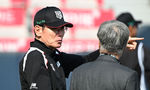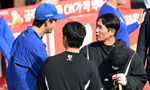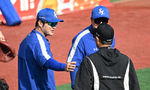 [OSEN=수원, 이대선 기자] 11일 오후 수원 KT위즈파크에서 2025 신한 SOL Bank KBO리그 KT 위즈와 삼성 라이온즈의 경기가 열렸다.경기에 앞서 KT 훈련장을 찾은 삼성의 두 베테랑 박병호와 강민호가 KT 코치진과 반갑게 인사를 나누고 있