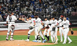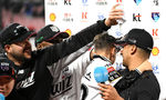 [OSEN=수원, 이대선 기자] KT 위즈가 삼성 라이온즈를 제압했다.KT는 11일 수원 KT위즈파크에서 열린 2025 신한 SOL뱅크 KBO리그 삼성과의 홈 경기에서 5-3으로 승리했다.경기 종료 후 KT 쿠에바스가 선수들과 승리의 기쁨을 나누고 있다
