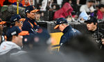 OSEN=대전, 지형준 기자] 12일 오후 대전 한화생명볼파크에서 2025 신한 SOL Bank KBO리그 한화 이글스와 키움 히어로즈의 경기가 열렸다.이날 한화는 엄상백, 키움은 정현우를 선발로 내세웠다.6회초 2사 1,2루에서 한화 김경문 감독이