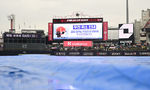 [OSEN=수원, 김성락 기자] 12일 오후 수원 KT위즈파크에서 열릴 예정이던 ‘2025 신한 SOL Bank KBO리그’ KT 위즈와 삼성 라이온즈의 경기가 갑작스러운 강우로 취소됐다. 이날 수원KT위즈파크는 경기 시작 1시간 전부터 강우가 쏟아졌