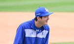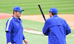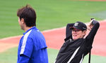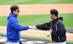 [OSEN=수원, 김성락 기자] 12일 오후 수원 KT위즈파크에서 ‘2025 신한 SOL Bank KBO리그’ KT 위즈와 삼성 라이온즈의 경기가 열렸다.홈팀 KT는 문용익, 원정팀 삼성은 레예스를 선발로 내세웠다. 경기 시작에 앞서 삼성 이진영 코치, KT