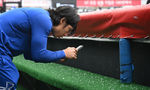 [OSEN=수원, 조은정 기자]13일 오후 수원 KT위즈파크에서 ‘2025 신한 SOL Bank KBO리그’ KT 위즈와 삼성 라이온즈의 경기가 열린다.홈팀 KT는 소형준, 원정팀 삼성은 레예스를 선발로 내세웠다. 수원구장에 우박이 떨어져있다. 2025.04.13