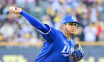 [OSEN=잠실, 민경훈 기자] 15일 서울 잠실야구장에서 2025 신한 SOL Bank KBO리그 LG 트윈스와 삼성 라이온즈의 경기가 열렸다.이날 LG는 에르난데스, 삼성은 후라도를 선발로 내세웠다.LG 선발 에르난데스가 마운드 위에서 힘차게 공을