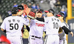[OSEN=잠실, 민경훈 기자] 15일 서울 잠실야구장에서 2025 신한 SOL Bank KBO리그 LG 트윈스와 삼성 라이온즈의 경기가 열렸다.이 경기에서 LG가 삼성에 3-0으로 승리했다. 역대 4번째 팀 노히트를 달성했다. 경기를 마치고 LG 선수들이 마