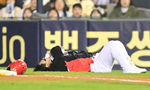 [OSEN=잠실, 김성락 기자] 18일 오후 서울 잠실야구장에서 2025 신한 SOL Bank KBO리그 두산 베어스와 KIA 타이거즈의 경기가 열린다.이날 두산은 콜어빈, KIA는 윤영철을 선발로 예고했다.6회초 무사 1루 KIA 김선빈이 희생번트를 댄 후 1