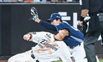 [OSEN=대전, 최규한 기자] 18일 오후 대전 한화생명 볼파크에서 ‘2025 신한 SOL Bank KBO리그’ 한화 이글스와 NC 다이노스의 경기가 열렸다.홈팀 한화는 엄상백, 방문팀 NC는 로건 앨런을 선발로 내세웠다.5회초 무사 1, 2루 상황 NC 박