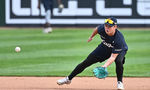 [OSEN=부산, 이석우 기자] 23일 부산 사직야구장에서 2025 신한 SOL 뱅크 KBO 리그 롯데 자이언츠와 한화 이글스의 경기가 열린다. 홈팀 롯데는 반즈, 방문팀 한화는 와이스가 선발 출전했한다.한화 이글스 이도윤이 훈련을 하고 있다.