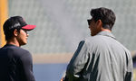 [OSEN=잠실, 김성락 기자] 23일 오후 서울 잠실야구장에서 2025 신한 SOL Bank KBO리그 LG 트윈스와 NC 다이노스의 경기가 열렸다.LG는 송승기, 엔씨는 로건을 선발 투수로 내세웠다.경기 시작에 앞서 LG 모창민 코치, NC 박민우가 이야기