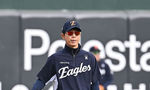 [OSEN=부산, 이석우 기자] 23일 부산 사직야구장에서 2025 신한 SOL 뱅크 KBO 리그 롯데 자이언츠와 한화 이글스의 경기가 열린다. 홈팀 롯데는 반즈, 방문팀 한화는 와이스가 선발 출전했한다.한화 이글스 이도윤이 훈련을 하고 있다.