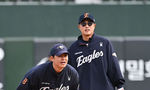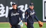 [OSEN=부산, 이석우 기자] 23일 부산 사직야구장에서 2025 신한 SOL 뱅크 KBO 리그 롯데 자이언츠와 한화 이글스의 경기가 열린다. 홈팀 롯데는 반즈, 방문팀 한화는 와이스가 선발 출전했한다.한화 이글스 하주석과 안치홍이 훈련을