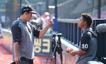 [OSEN=잠실, 김성락 기자] 23일 오후 서울 잠실야구장에서 2025 신한 SOL Bank KBO리그 LG 트윈스와 NC 다이노스의 경기가 열렸다.LG는 송승기, 엔씨는 로건을 선발 투수로 내세웠다.경기 시작에 앞서 LG 성동현과 에르난데스가 이야기를
