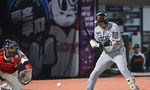 [OSEN=부산, 이석우 기자] 24일 부산 사직야구장에서 2025 신한 SOL 뱅크 KBO 리그 롯데 자이언츠와 한화 이글스의 경기가 열렸다. 홈팀 롯데는 박세웅, 방문팀 한화는 류현진이 선발 출전했다.롯데 자이언츠 유강남이 4회초 1사 1루
