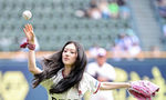 [OSEN=잠실, 지형준 기자] 25일 서울 잠실구장에서 2025 신한 SOL Bank KBO리그 두산 베어스와 NC 다이노스의 경기가 열렸다.이날 두산은 잭로그, 콜어빈, NC는 최성용을 선발로 내세웠다.가수 키키 이솔이 시구를 하고 있다. 2025.05.25 /jpne