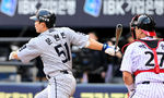 [OSEN=수원, 박준형 기자] 28일 오후 수원 KT위즈파크에서 열린 ‘2025 신한 SOL BANK KBO리그’ KT 위즈와 두산 베어스의 경기가 진행됐다.이날 경기에는 KT는 쿠에바스를, 두산을 최민석을 선발투수로 내세웠다.3회초 무사 1루 두산 김