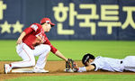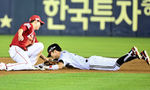 [OSEN=잠실, 지형준 기자] 12일 오후 서울 잠실구장에서 ‘2025 신한 SOL Bank KBO리그’ LG 트윈스와 SSG 랜더스의 경기가 열렸다.LG는 치리노스, SSG는 전영준을 선발로 내세웠다6회말 무사 1루에서 LG 박해민이 SSG 박성한에 태그아웃 당