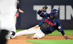 [OSEN=수원, 조은정 기자]12일 오후 수원 KT위즈파크에서 ‘2025 신한 SOL Bank KBO리그’ KT 위즈와 롯데 자이언츠의 경기가 열렸다.이날 홈팀 KT의 선발투수는 소형준, 방문팀 롯데는 김진욱이 나선다.7회초 2사 1루 손호영이 2루 도루에