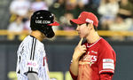 [OSEN=잠실, 지형준 기자] 12일 오후 서울 잠실구장에서 ‘2025 신한 SOL Bank KBO리그’ LG 트윈스와 SSG 랜더스의 경기가 열렸다.LG는 치리노스, SSG는 전영준을 선발로 내세웠다4회말 2사 1루에서 견제에 걸린 LG 박해민이 SSG 박성한에
